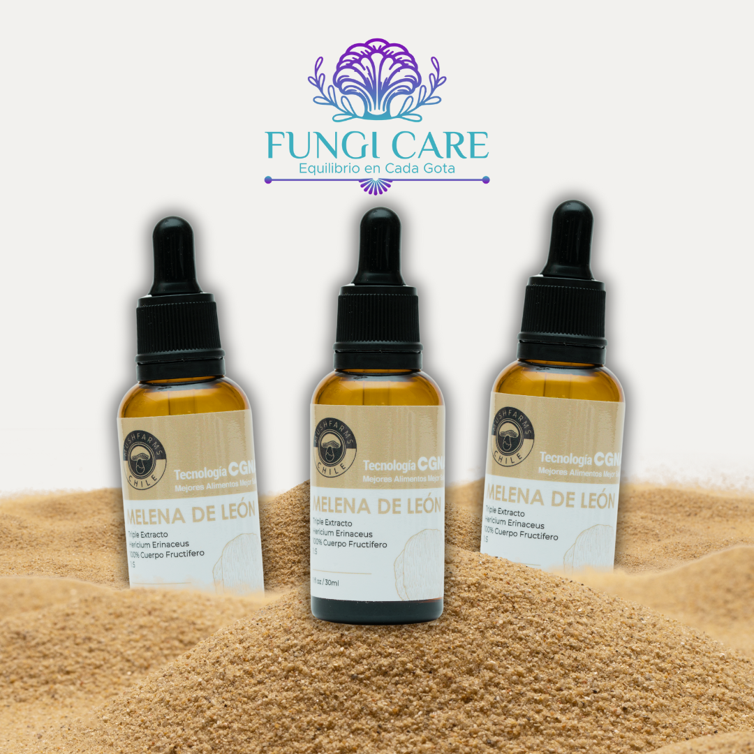 Entre los compuestos bioactivos de la Melena de León destacan las hericenonas y polisacaridos. Las erinacinas, presentes en el micelio, son potentes estimuladores de la síntesis de NGF, mientras que las hericenonas, encontradas en el cuerpo fructífero, también contribuyen a la neurogénesis. Nuestros extractos líquidos se elaboran a partir del cuerpo fructífero asegurando una alta concentración de estos compuestos beneficiosos.